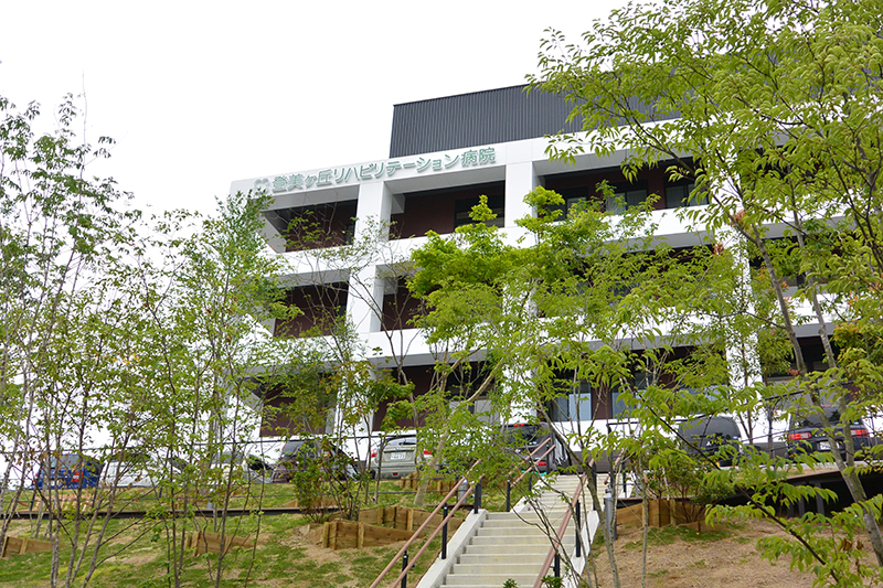 近鉄 学研奈良登美ヶ丘駅からほど近くにある登美が丘リハビリテーション病院様は、新築時に地上部、中庭、屋上庭園を計画、施工させていただきました。