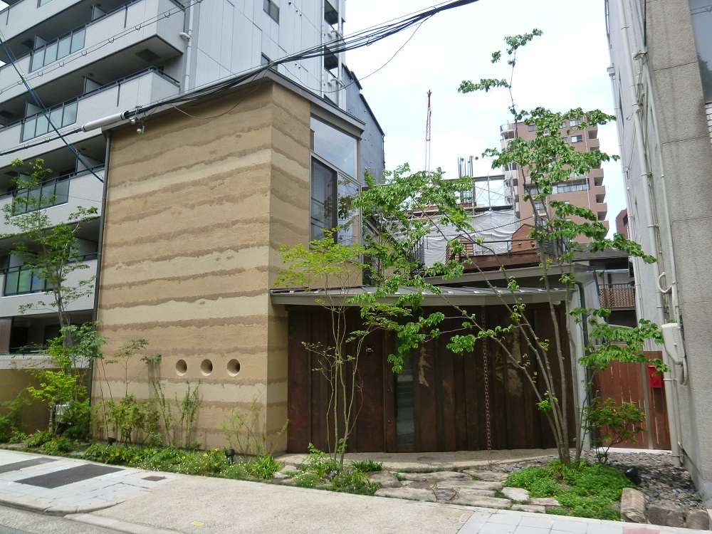 エントランスでヤマボウシ、ハウチワカエデなどの優しい木立ちがお客さんをお迎え。