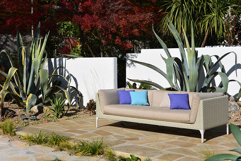 広々としたテラスと、ゆったり座れる上質なソファ、エッジの効いた植物たち…