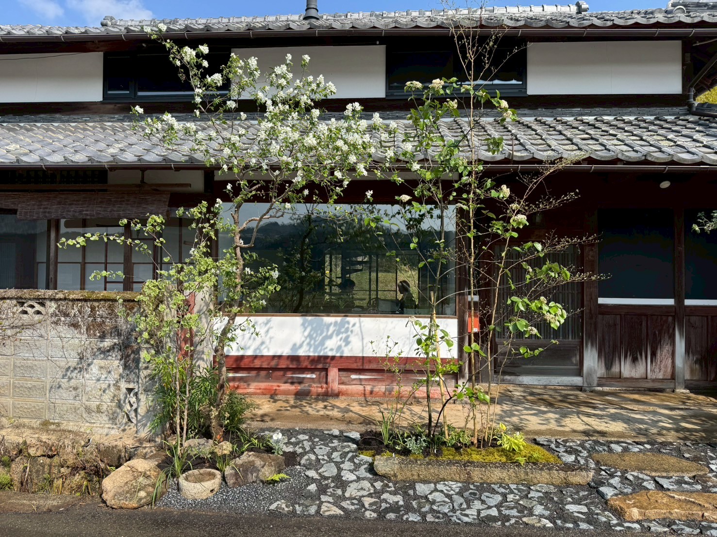 足元には既存の石を活かしつつ、ゴロタ石を敷き込み、落ち着いた雰囲気の前庭に生まれ変わりました。