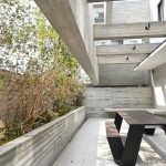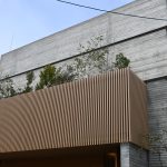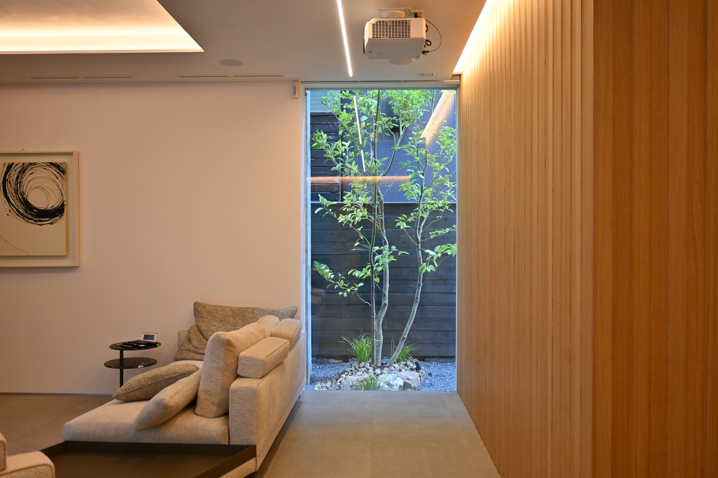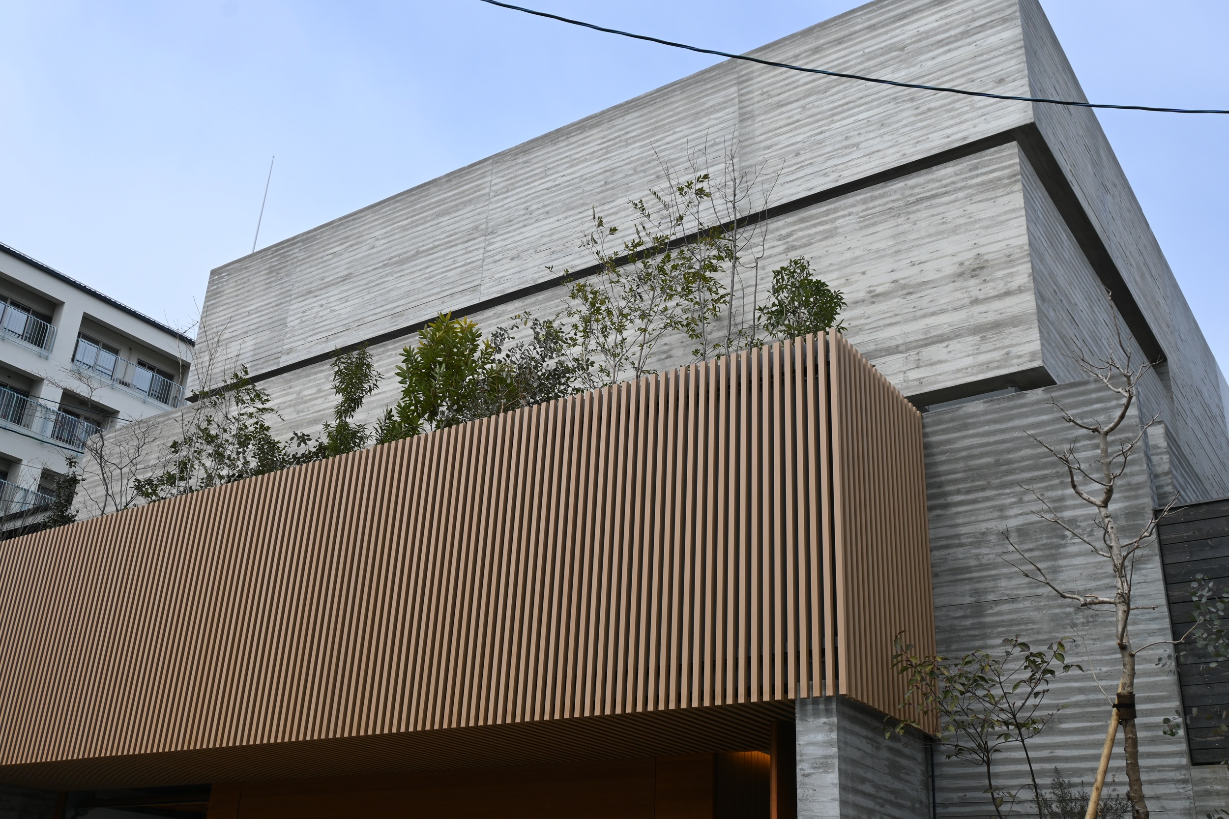 凹凸のある外壁には、ゆらぐ木々の影がそっと映り込み、時間帯ごとに違う表情を見せてくれます。