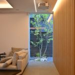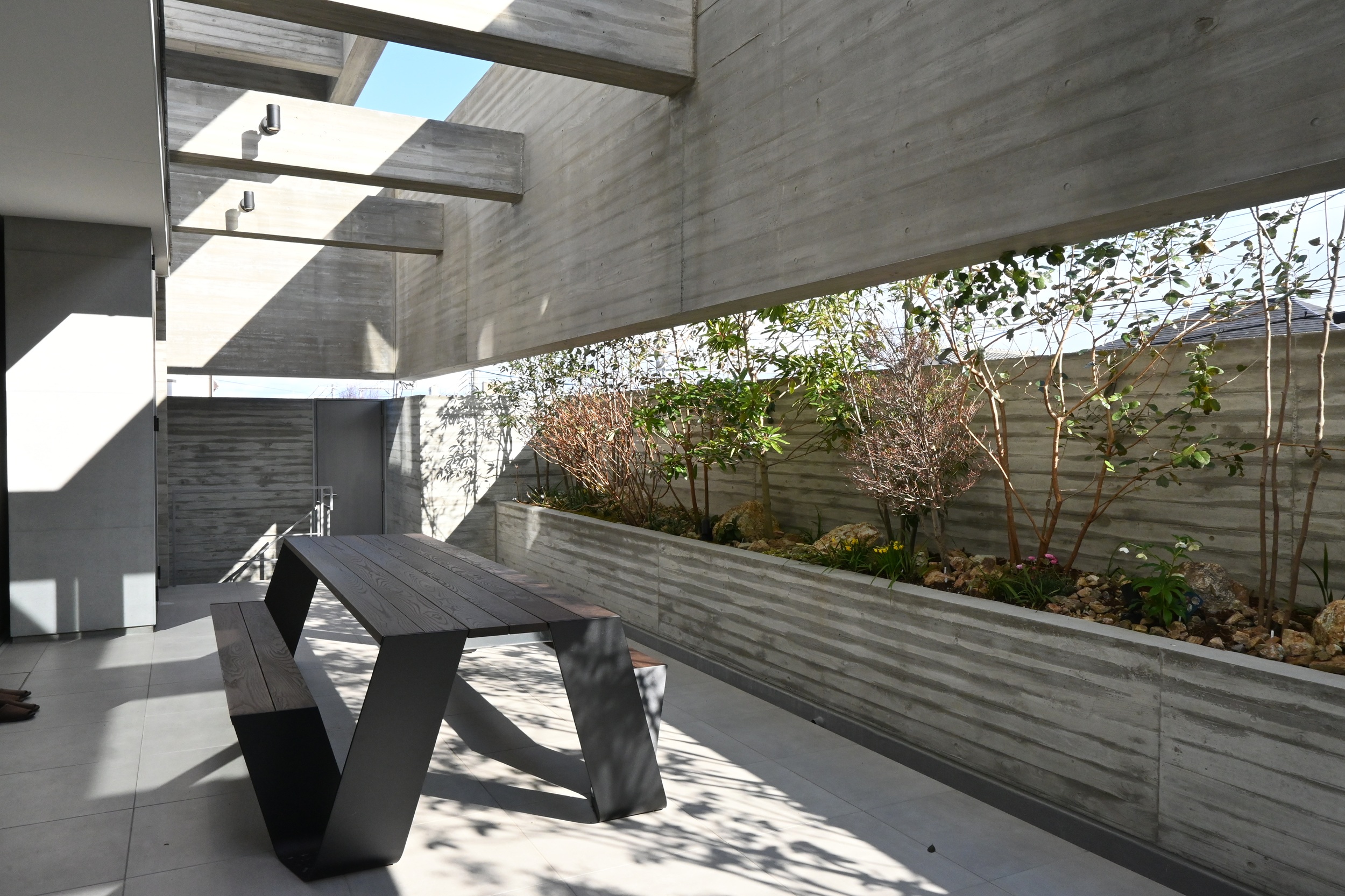 南側のLDKに面したテラスは、建物に設けられた浮き壁が空へと広がりを感じさせ、光がよく通る明るい場所です。