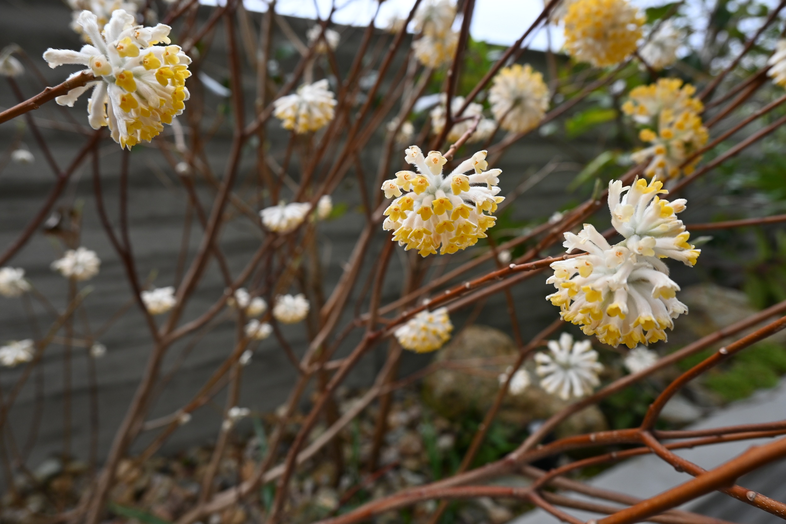 同じRC造の花壇には、目隠しを兼ねて常緑樹を中心にアオダモやヤマボウシ、ミツマタなどを植え、