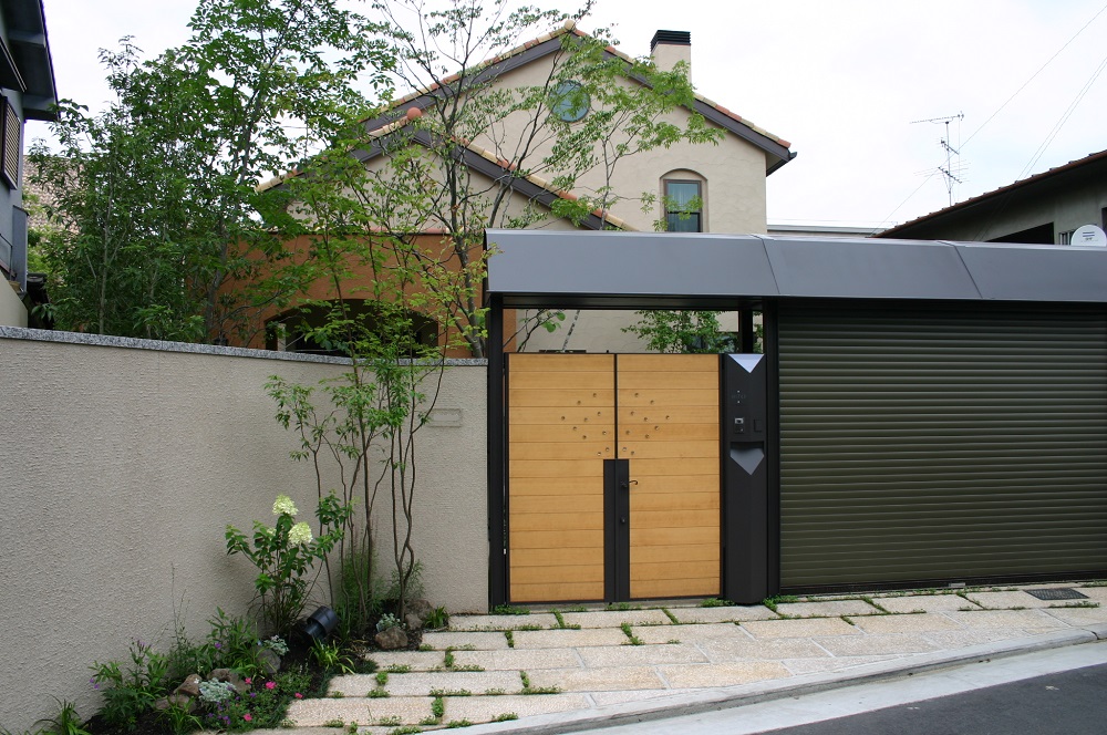 #スタイリッシュ #リン酸鉄板 #レンガ積み #京都の庭 #延段 #石積み #門屋Detail -